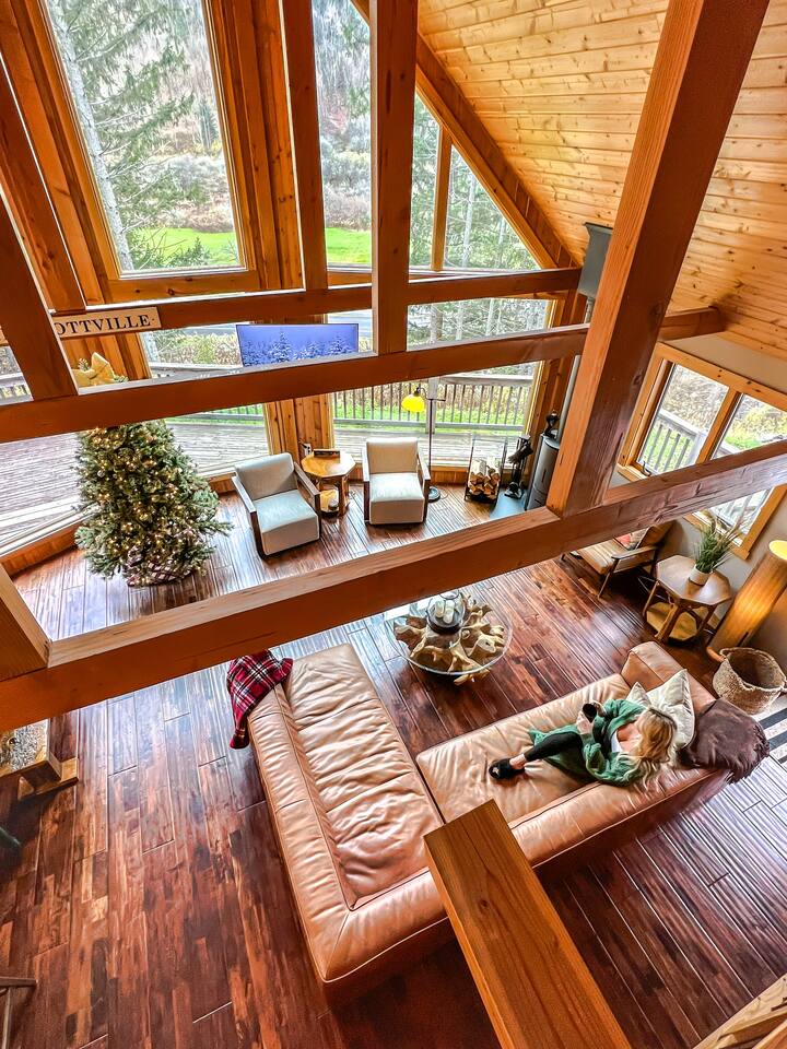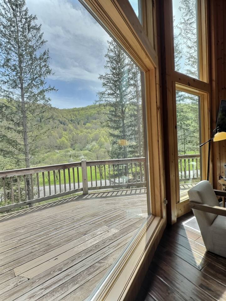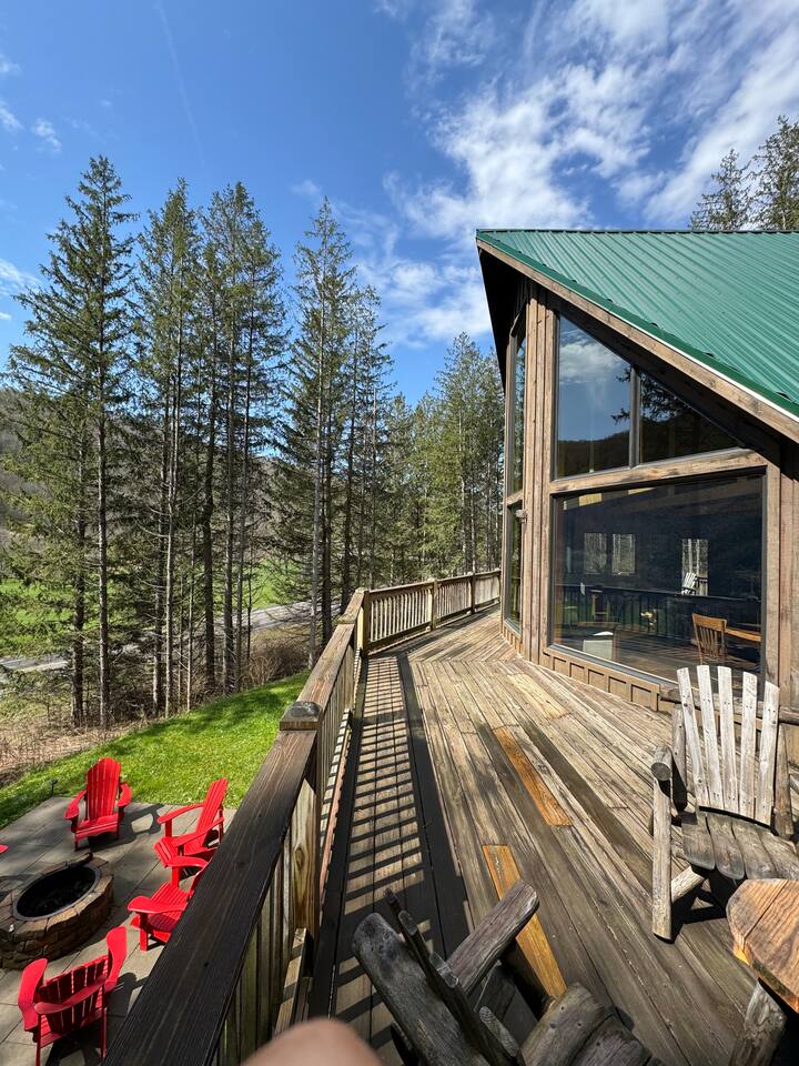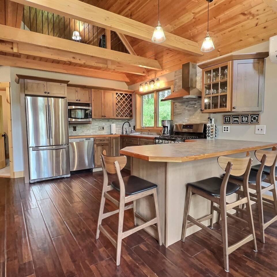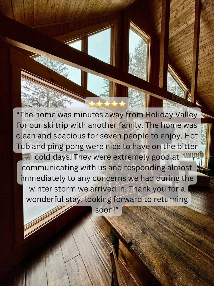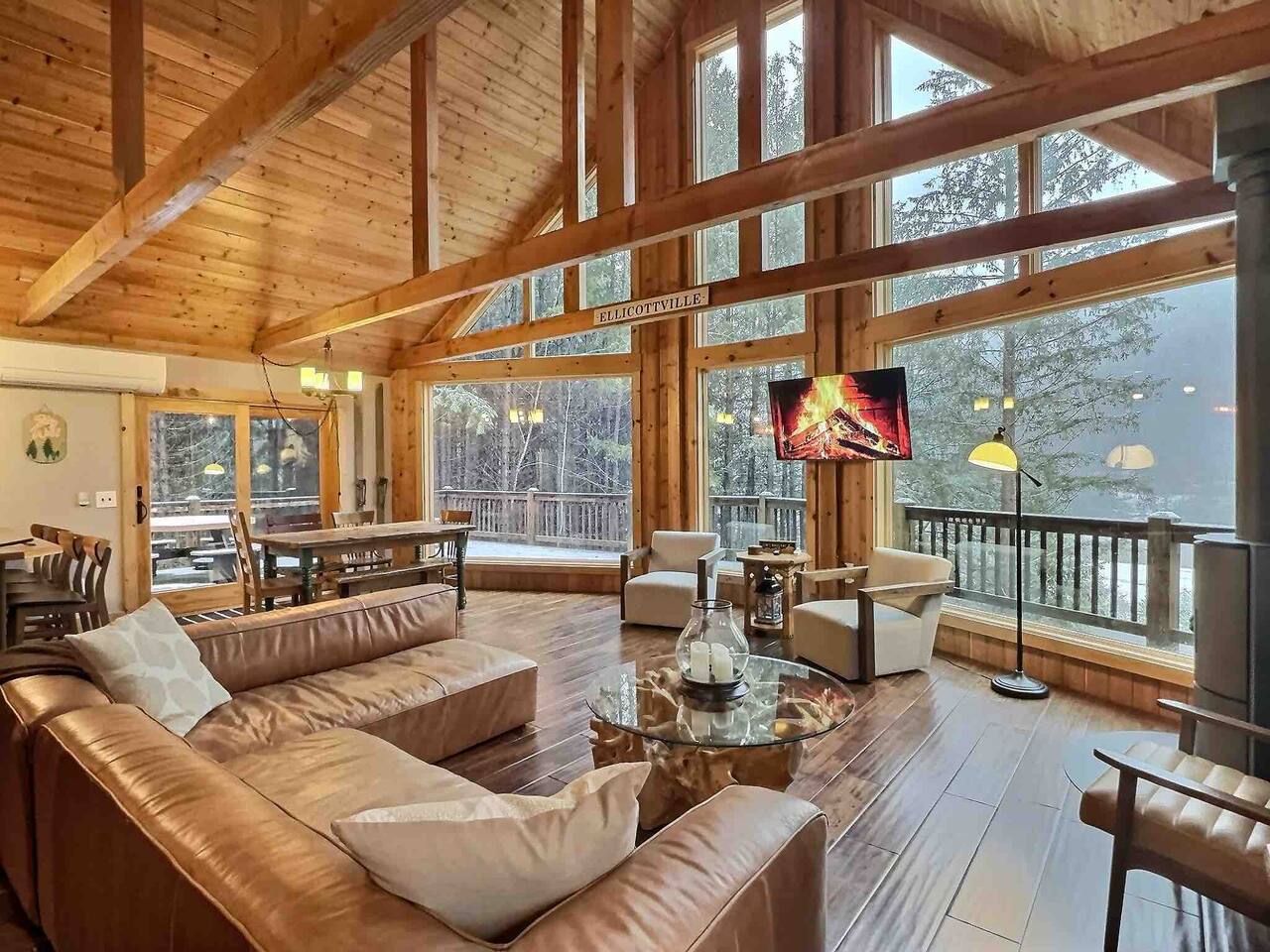 Welcome to our beautiful wood beam chalet—the ultimate retreat in Ellicottville, NY for families, friends, and couples looking to relax, recharge, and enjoy the outdoors. With breathtaking mountain views inside and out, this chalet offers comfort, style, and unforgettable experiences just minutes from the Village of Ellicottville. 🛌 Sleeping Arrangements: • 2 Bedrooms with Queen Beds • Loft with 1 King Bed + 2 Twin Beds • Pull out queen sofa in first floor rec room • 2 Full Bathrooms with Walk-In Showers (All linens, pillows, and towels included) 🍴 Fully Equipped Kitchen: Cookware, dishes, utensils, 12-cup coffee maker, and Weber BBQ grill for easy meals together. 🔥 Relax & Unwind: • 8-Person Hot Tub with scenic views • Large Unilock Paver Fire Pit with red Adirondack chairs • Cozy wood-burning Stuv fireplace for chilly nights • Spacious wrap-around deck for morning coffee or evening cocktails 🎮 Entertainment for All Ages: • Finished lower level hangout space • Ping Pong Table & Pac-Man Arcade • 3 Smart TVs with streaming • High-speed WiFi for work or play 🌲 Outdoor Adventure: Step outside and connect to the Finger Lakes Hiking Trail right from the property—perfect for hikers and nature lovers. ✨ Extra Perks: Firewood provided for the fireplace Ask about our private chef services for a one-of-a-kind dining experience 🚫 Please Note: No pets No events or large parties (bachelor/bachelorette groups welcome within occupancy limits) Minimum age to book: 25 Whether you’re here for ski season, Fall Festival, hiking, or a cozy weekend escape, our chalet is the perfect Ellicottville Airbnb to make lasting memories. 📅 Book your stay today and start your mountain getaway!