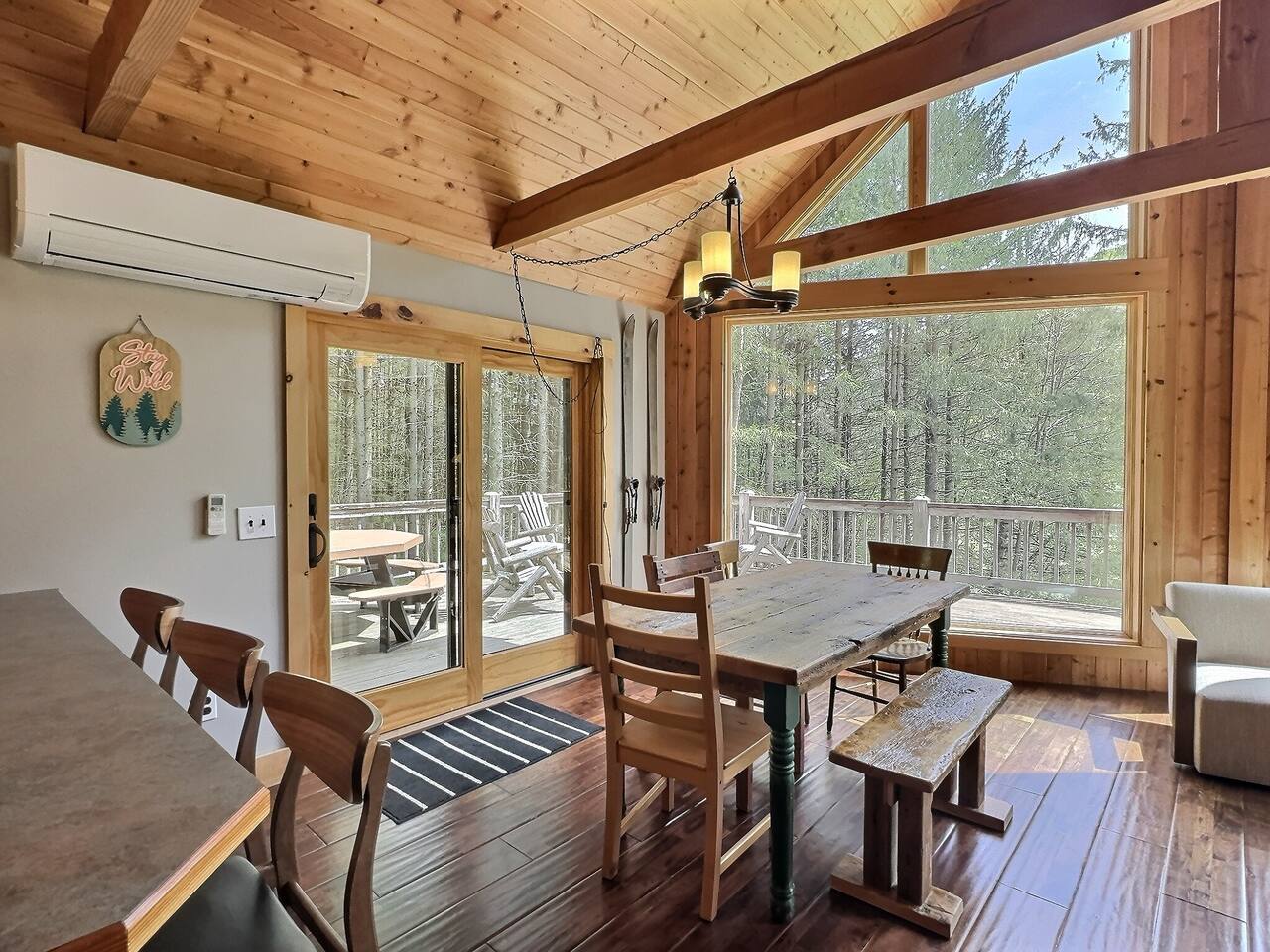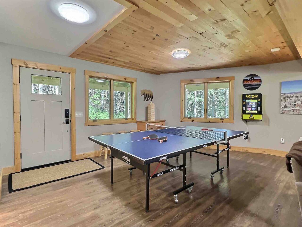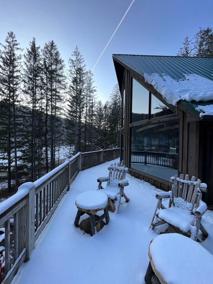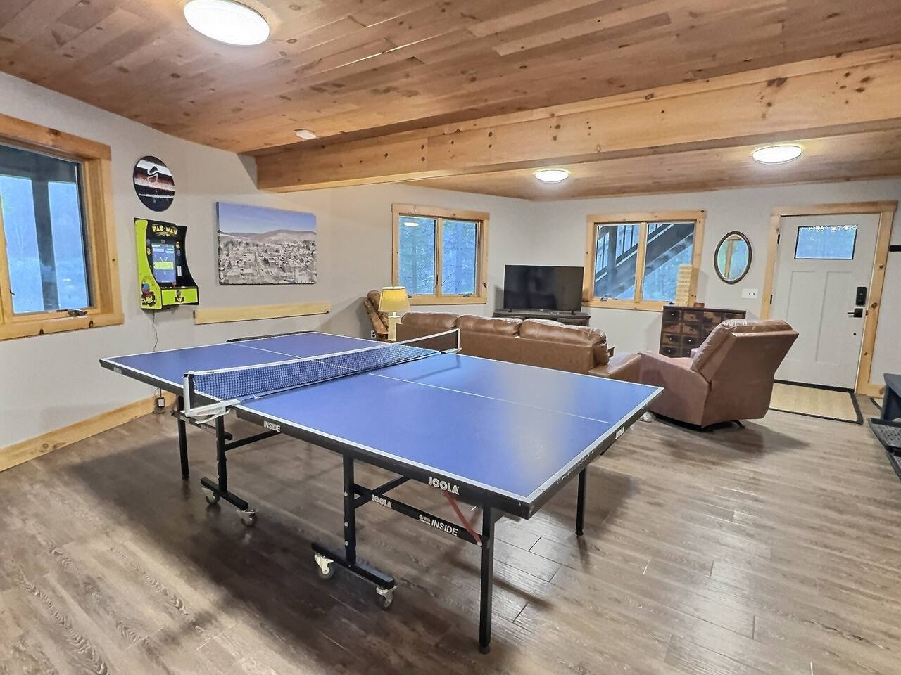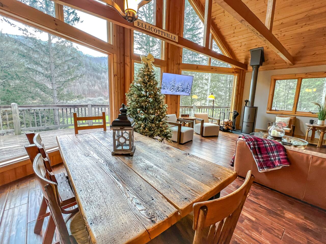 Welcome to our beautiful wood beam chalet—the ultimate retreat in Ellicottville, NY for families, friends, and couples looking to relax, recharge, and enjoy the outdoors. With breathtaking mountain views inside and out, this chalet offers comfort, style, and unforgettable experiences just minutes from the Village of Ellicottville. 🛌 Sleeping Arrangements: • 2 Bedrooms with Queen Beds • Loft with 1 King Bed + 2 Twin Beds • Pull out queen sofa in first floor rec room • 2 Full Bathrooms with Walk-In Showers (All linens, pillows, and towels included) 🍴 Fully Equipped Kitchen: Cookware, dishes, utensils, 12-cup coffee maker, and Weber BBQ grill for easy meals together. 🔥 Relax & Unwind: • 8-Person Hot Tub with scenic views • Large Unilock Paver Fire Pit with red Adirondack chairs • Cozy wood-burning Stuv fireplace for chilly nights • Spacious wrap-around deck for morning coffee or evening cocktails 🎮 Entertainment for All Ages: • Finished lower level hangout space • Ping Pong Table & Pac-Man Arcade • 3 Smart TVs with streaming • High-speed WiFi for work or play 🌲 Outdoor Adventure: Step outside and connect to the Finger Lakes Hiking Trail right from the property—perfect for hikers and nature lovers. ✨ Extra Perks: Firewood provided for the fireplace Ask about our private chef services for a one-of-a-kind dining experience 🚫 Please Note: No pets No events or large parties (bachelor/bachelorette groups welcome within occupancy limits) Minimum age to book: 25 Whether you’re here for ski season, Fall Festival, hiking, or a cozy weekend escape, our chalet is the perfect Ellicottville Airbnb to make lasting memories. 📅 Book your stay today and start your mountain getaway!