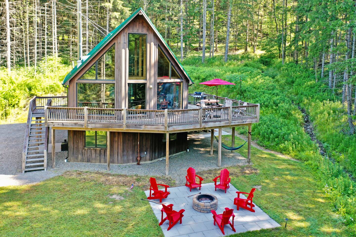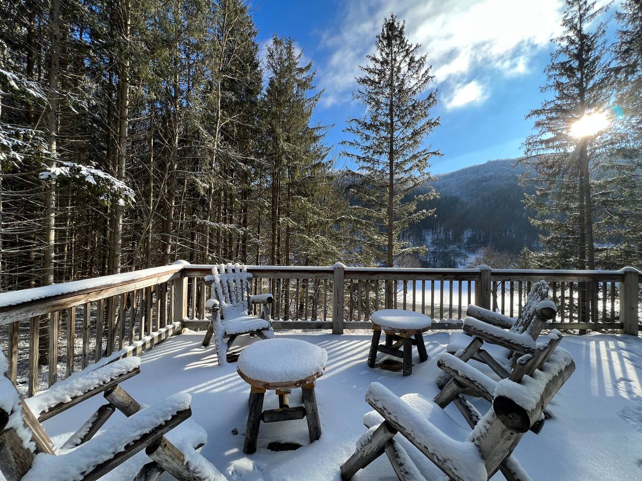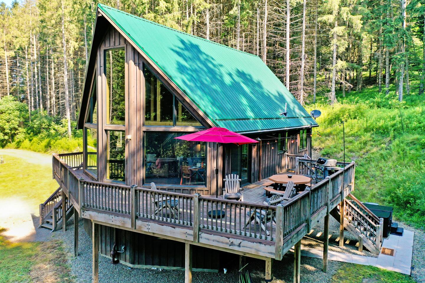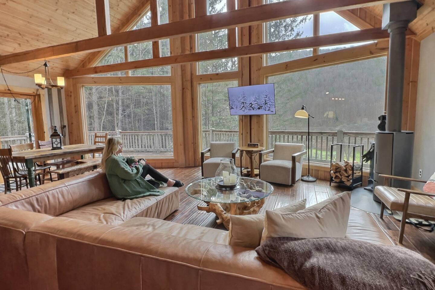 Welcome to our beautiful wood beam chalet—the ultimate retreat in Ellicottville, NY for families, friends, and couples looking to relax, recharge, and enjoy the outdoors. With breathtaking mountain views inside and out, this chalet offers comfort, style, and unforgettable experiences just minutes from the Village of Ellicottville. 🛌 Sleeping Arrangements: • 2 Bedrooms with Queen Beds • Loft with 1 King Bed + 2 Twin Beds • Pull out queen sofa in first floor rec room • 2 Full Bathrooms with Walk-In Showers (All linens, pillows, and towels included) 🍴 Fully Equipped Kitchen: Cookware, dishes, utensils, 12-cup coffee maker, and Weber BBQ grill for easy meals together. 🔥 Relax & Unwind: • 8-Person Hot Tub with scenic views • Large Unilock Paver Fire Pit with red Adirondack chairs • Cozy wood-burning Stuv fireplace for chilly nights • Spacious wrap-around deck for morning coffee or evening cocktails 🎮 Entertainment for All Ages: • Finished lower level hangout space • Ping Pong Table & Pac-Man Arcade • 3 Smart TVs with streaming • High-speed WiFi for work or play 🌲 Outdoor Adventure: Step outside and connect to the Finger Lakes Hiking Trail right from the property—perfect for hikers and nature lovers. ✨ Extra Perks: Firewood provided for the fireplace Ask about our private chef services for a one-of-a-kind dining experience 🚫 Please Note: No pets No events or large parties (bachelor/bachelorette groups welcome within occupancy limits) Minimum age to book: 25 Whether you’re here for ski season, Fall Festival, hiking, or a cozy weekend escape, our chalet is the perfect Ellicottville Airbnb to make lasting memories. 📅 Book your stay today and start your mountain getaway!