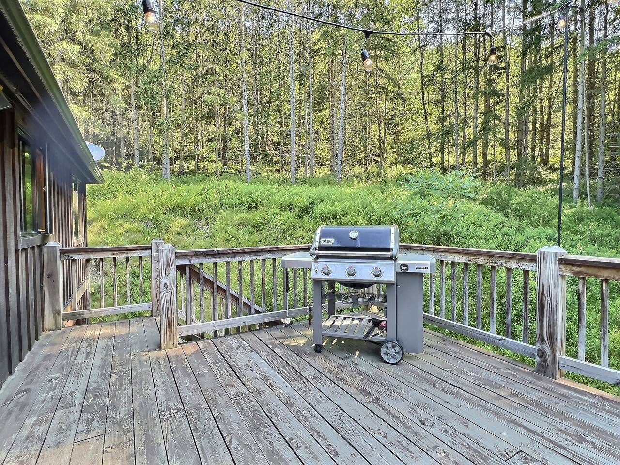 Located just two miles from the Village of Ellicottville, The Pines on Maples offers stunning views & a variety of amenities for relaxation and entertainment. Tucked away in the rolling hills of Western New York, this chalet features a large wood deck with a Weber grill & sitting area, as well as a walk-down path to an eight-person hot tub & an unilock fire pit with Adirondack chairs. State of the art Stuv indoor fireplace for cozy cabin days!!
