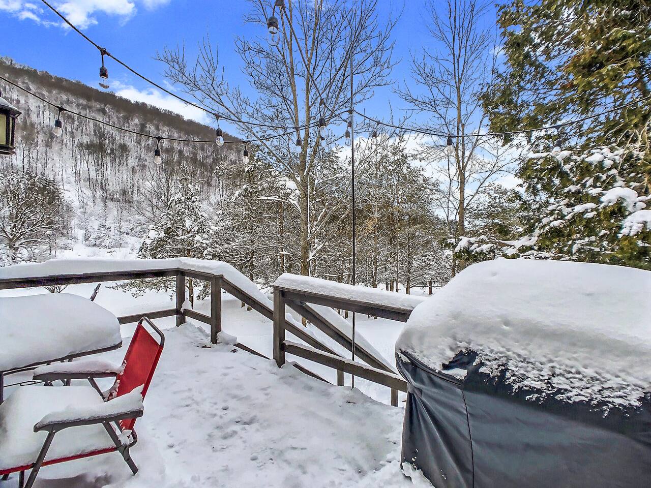 Welcome to Maples Retreat — a modern Ellicottville getaway just 1.7 miles from the Village and minutes to Holiday Valley skiing. Unwind by the wood-burning fireplace, enjoy peaceful mountain views on 2 private acres, and relax in a spacious home designed for ski trips, families, and group getaways. Pets allowed 40lb max with approval. BOOK 5+ nights and get 20% OFF!!